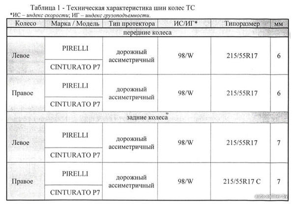 Основные выводы таковы: «Тормозная система обеспечивает срабатывание тормозных механизмов колес», «Рулевое управление обеспечивает преобразование положения (угла поворота) рулевого колеса», «Эксплуатация с установленными шинами разрешена». На часть вопросов невозможно было дать ответы ввиду повреждений автомобиля.
