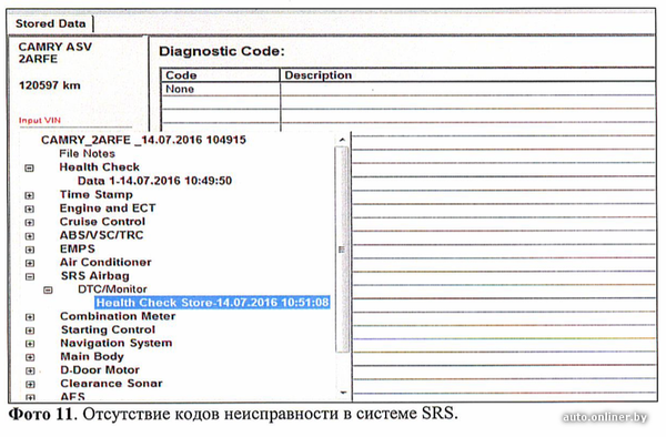 Специалисты дилера сделали пять основных выводов. Во-первых, система SRS на момент осмотра и во время аварии находилась в полностью исправном состоянии. Во-вторых, при столкновении необходимые условия, заданные производителем для срабатывания подушек безопасности всех типов, достигнуты не были. В-третьих, подушки безопасности и преднатяжители ремней безопасности не должны были активироваться. В-четвертых, с точки зрения внутренней пассивной безопасности необходимость срабатывания подушек отсутствовала. В-пятых, система SRS в той ситуации сработала адекватно полученным повреждениям.