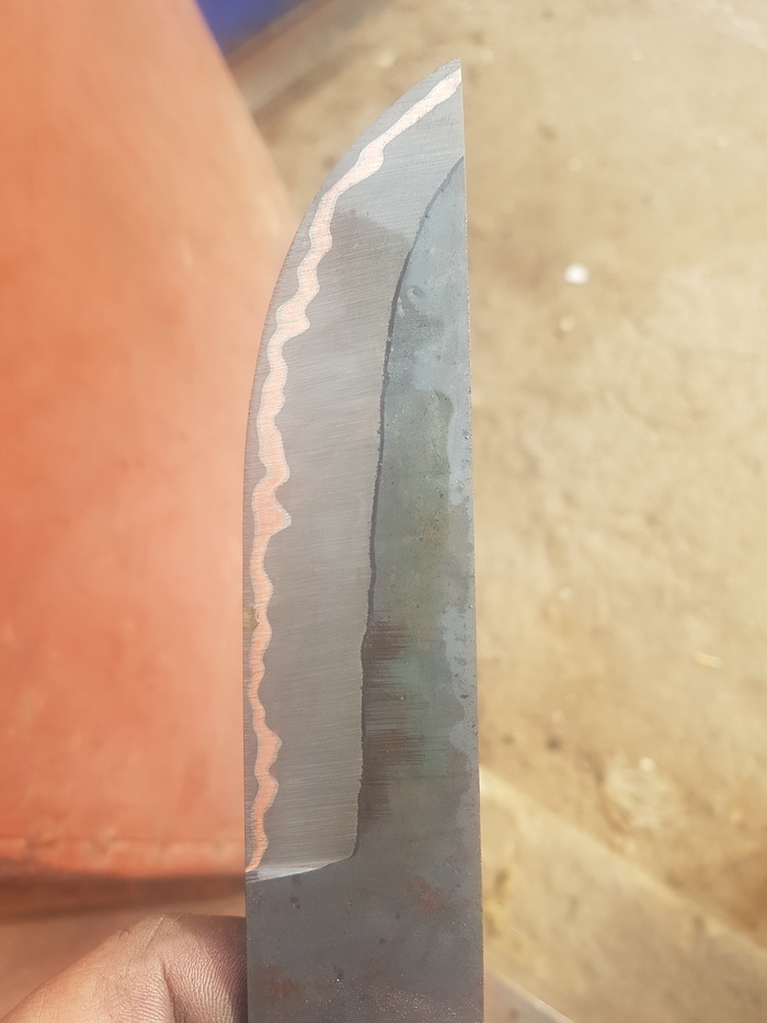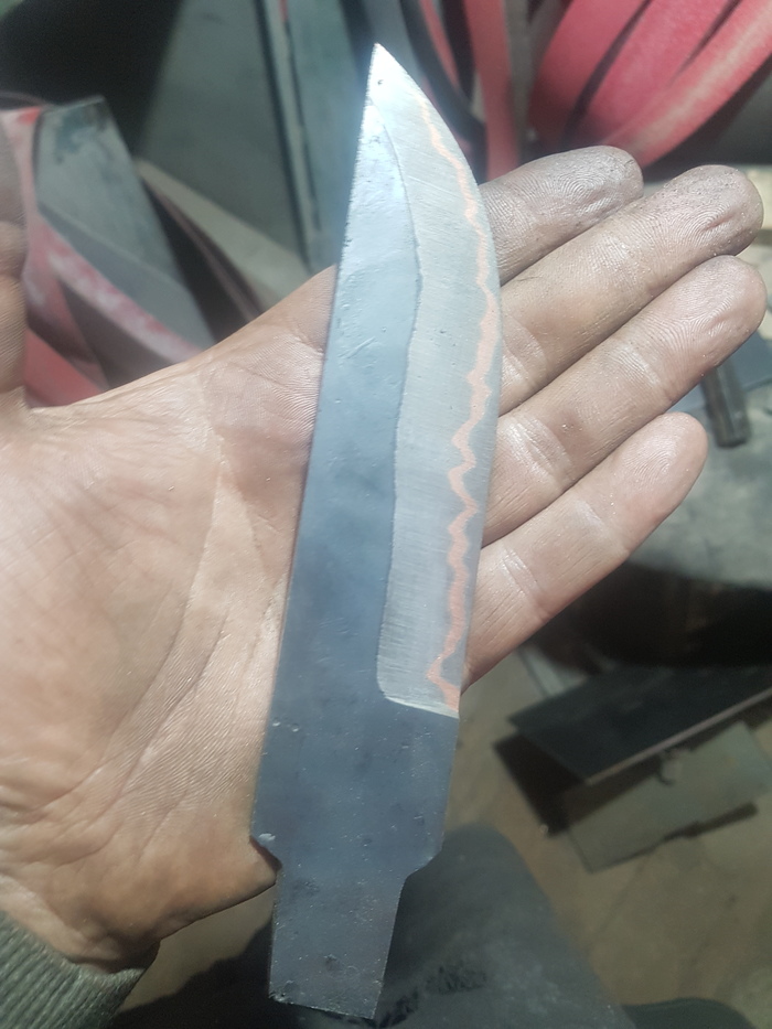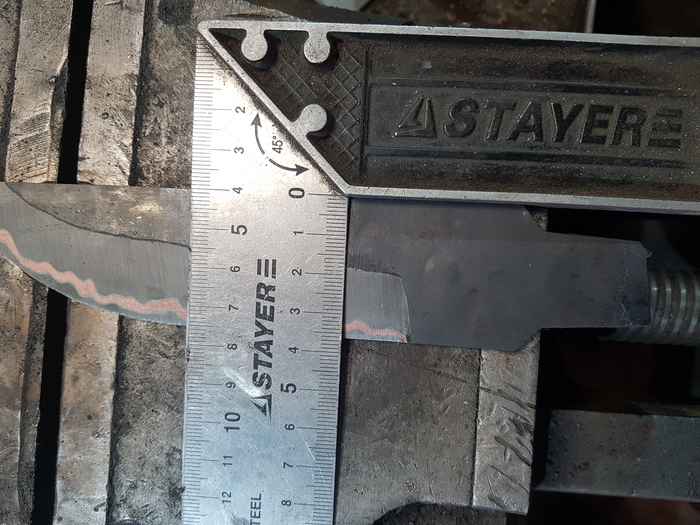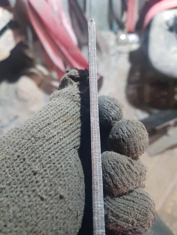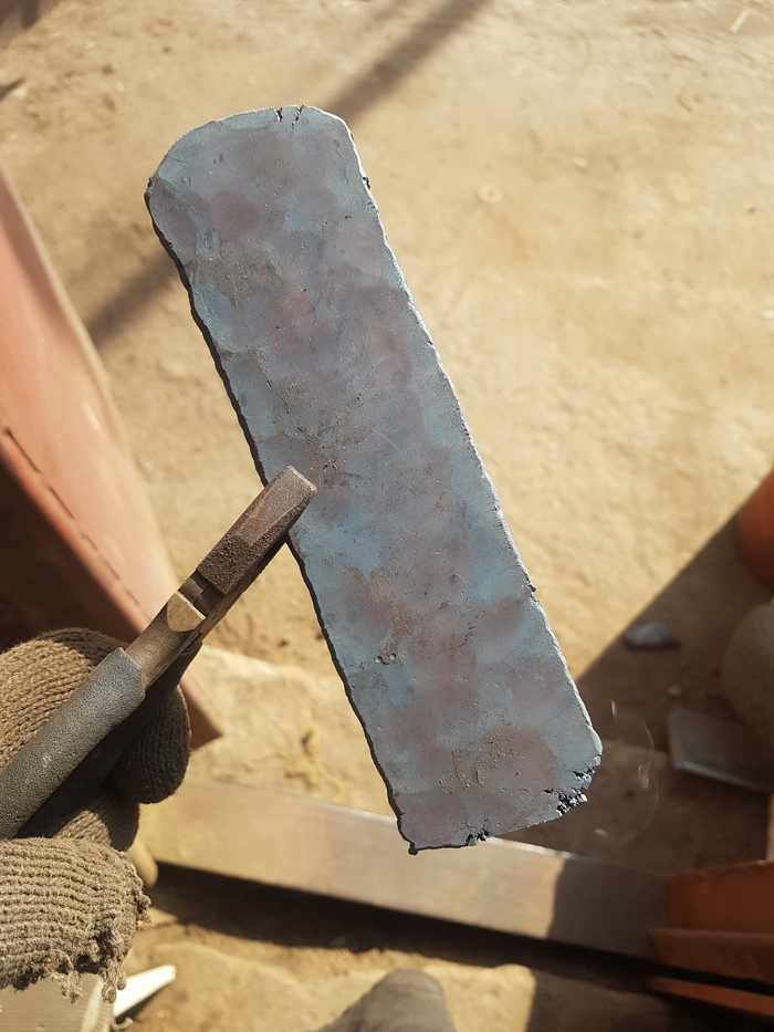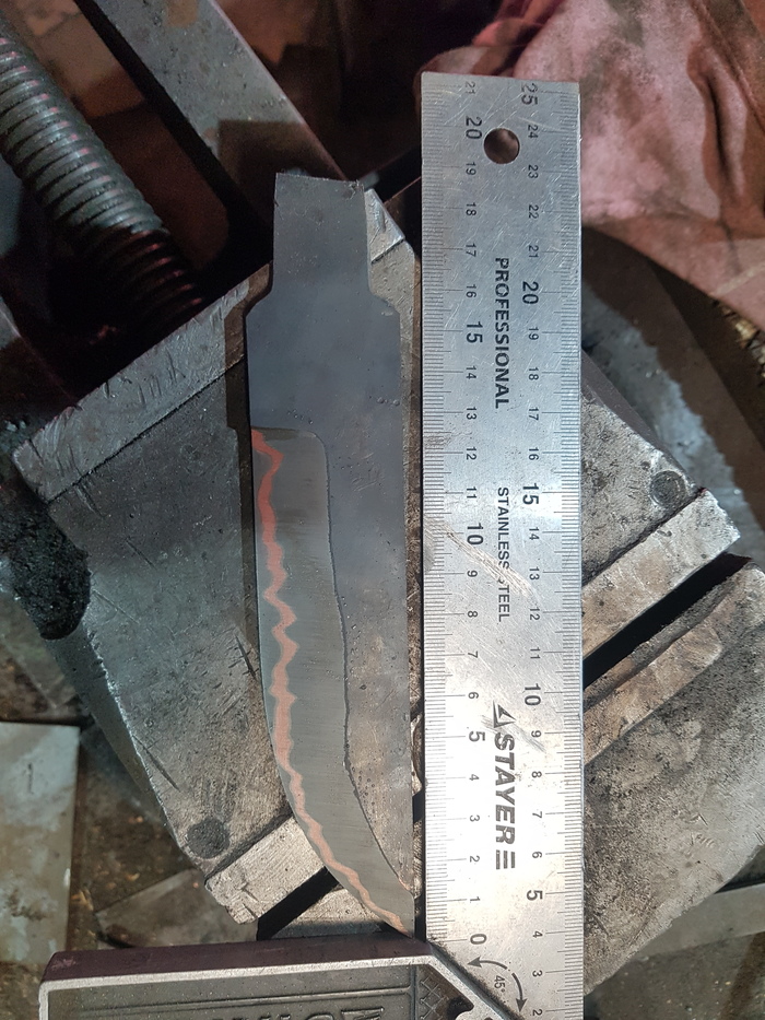Вскрыл торец на гриндере, момент волнительный если не сварилось при ковке то будут непровары между слоями.
