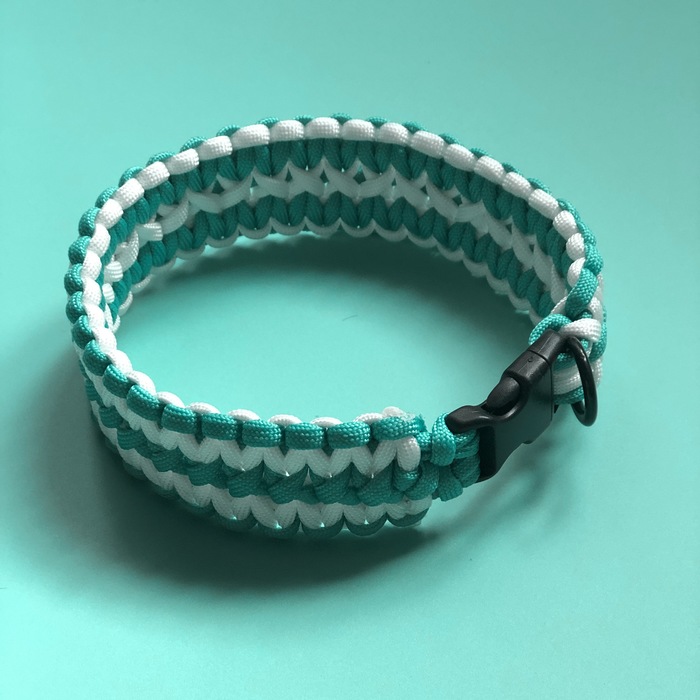 Несколько лет назад с коллегой-собачницей мы озадачились ошейниками ручной работы для своих собак. Заказали нити, нашли схемы и пошло-поехало.