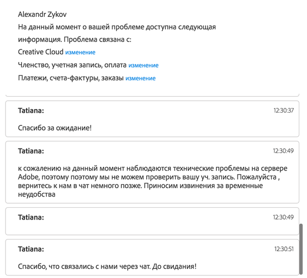 Российская служба поддержки Adobe это именно то, ради чего создавался этот пост.