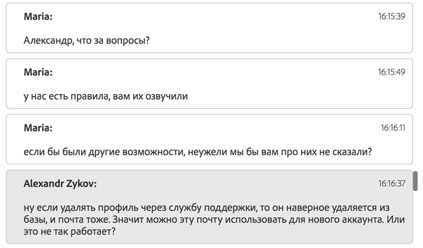 Стул подо мной слегка подгорел, но всякое бывает. Через день попытался обратиться еще раз. Ожидание продлилось час с небольшим, я даже успел забыть об этом, когда же вспомнил и вернулся, увидел несколько сообщений и закрытый чат.
