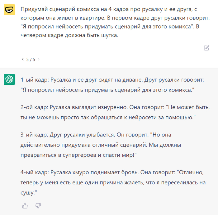 917 zinben Комиксы Я попросил нейросеть придумать сценарий для этого комикса 2 года назад Показать полностью 2 [моё] Бензиновые пары Комиксы Авторский комикс Веб-комикс Русалка Нейронные сети ChatGPT 11 9 Ещё 0