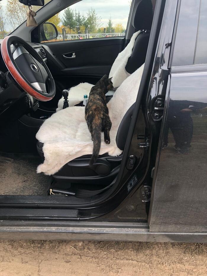 На прошлых выходных поехали мы с супругой на кладбище к её маме, в область. Приехали и почти сразу к нам вышла кошка, редкой такой окраски "богатка" сама тёмная и по всей маленькие такие пятна рыжие и белые. И пузико белое. Мяукала, ласкалась, ну ласковая такая и не грязная. Накормили её купатами которые были с собой и долго думали забрать или нет. Думали потому, что у нас ещё года нет как ушёл на радугу кот, Мася. И супруга сказала никаких кошек больше. (Плакала очень когда мася умер) А тут... Короче, решили приехать на завтра. Если найдем - заберем и поехали к её сестре на дачу. Когда уезжали смотрю а у супруги слёзы на глазах. Ну пипец думаю. На следующий день приехали опять (а пробег не маленький) смотрели, смотрели...кыскали, поехали уже домой, глядь идёт))) мяукает. Покормили поласкали, сама в машину залезла обнюхала всё, но как только тронулись стала проситься на улицу. Мяукает, лапой дверь царапает, лезет везде. Супруга окно открыла и она выскочила на улицу, а там ехали парни на квадрике и с ними большой такой пёс, немецкая овчарка. Короче погнал он нашу кошку в лес и скоро вернулся. Мы остановились, я пошёл искать котейку, фигу. Не нашел. :( Ещё поискали немного и поехали домой.