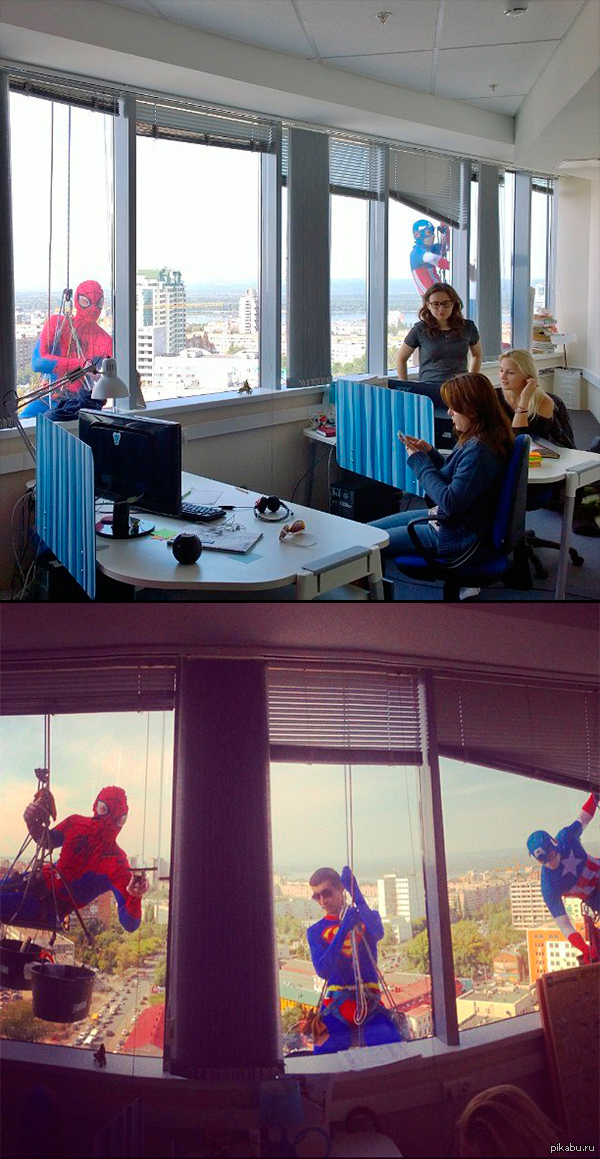394 zlojvirus Моют окна 11 лет назад Вот такие персонажи нам мыли сегодня окна Промышленный альпинизм Супермен Человек-паук Капитан Америка