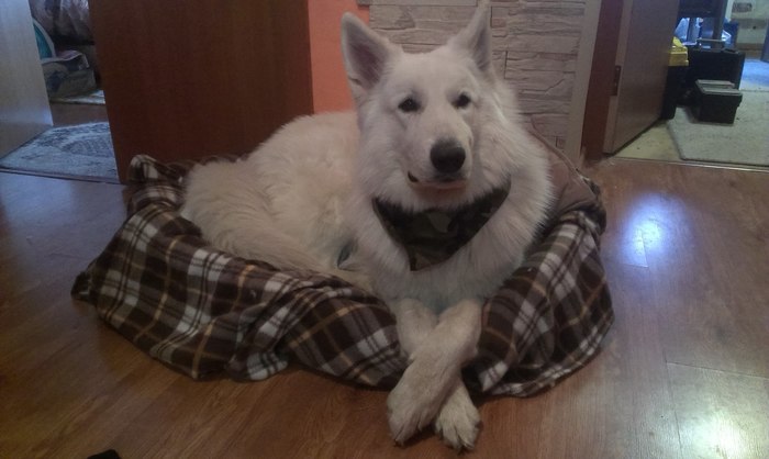 Доброго всем времени суток. Хочу рассказать вам, как появилась и как живет в нашем доме собака. Знакомьтесь - это Цезарь. Белая швейцарская овчарка. Сейчас он крупный зверь, массой 44 кг, 4-х лет от роду.