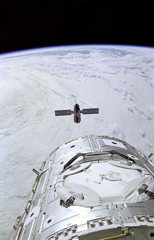 1998 год. Снимок «Зари» с борта шаттла «Индевор», который везет на стыковку к ней первый американский модуль, «Юнити»