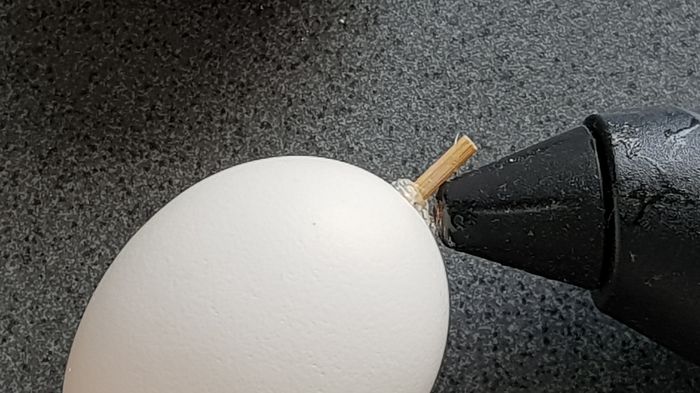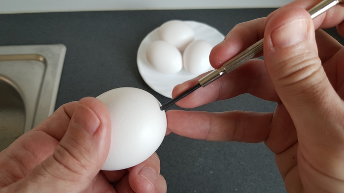 Я пробовал использовать шуруповёрт с маленькими сверлами, но этот способ работает плохо, т.к. яйца обычно трескаются.