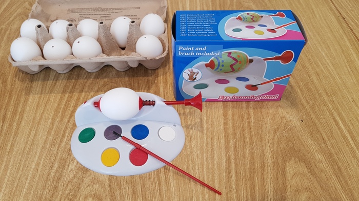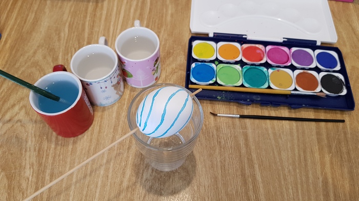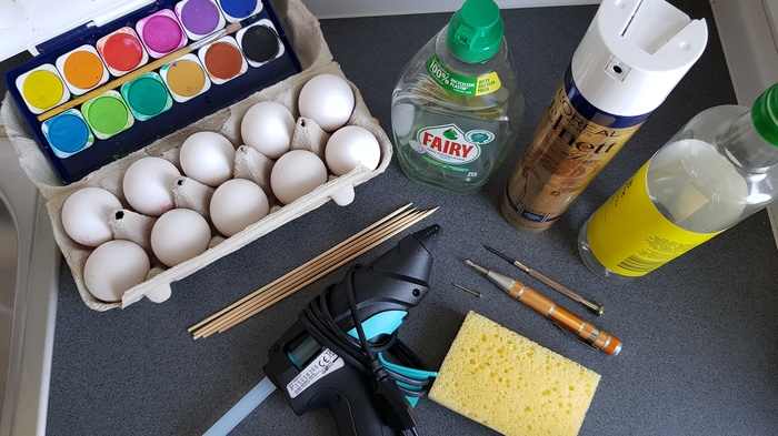 Можно сначала раскрасить яйца с помощью покрасочной стации, а потом уже клеить их на шпажки.