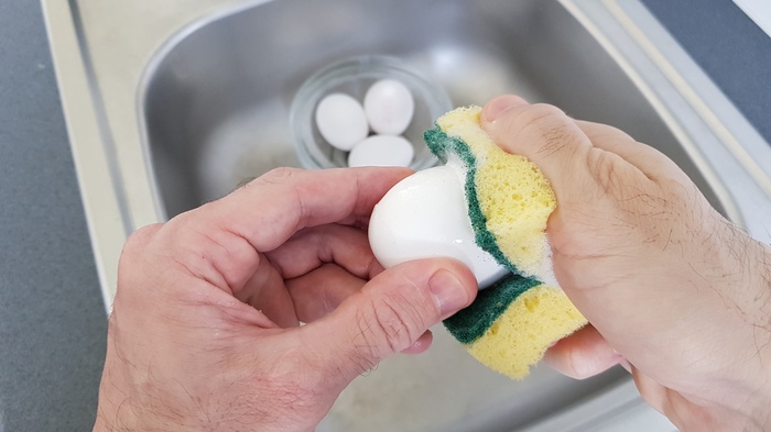 Подготовка яиц. Сначала нужно тщательно вымыть яйца губкой со средством для мытья посуды. Это необходимо, чтобы убрать органические загрязнения.