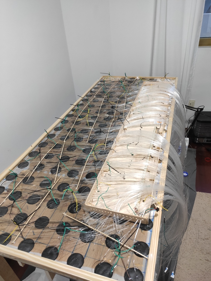 Потом шуруповёртом сделал полости для сенсорных площадок. 160 штук получилось.