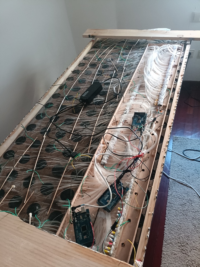 Ну а потом меня ждала самая интересная часть, начал коммутировать сенсоры ttp223b и программировать ардуино. Сколько раз я тут хотел все бросить, и сделать чтобы столешница просто светилась или мерцала... Но постепенно победил и эту часть.