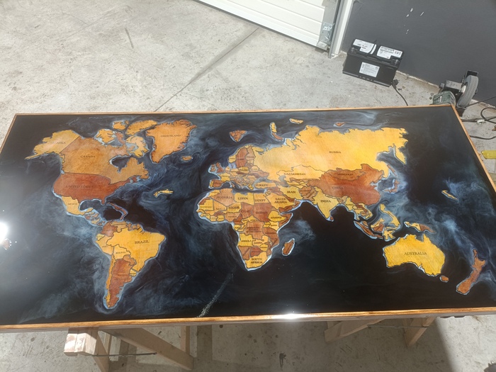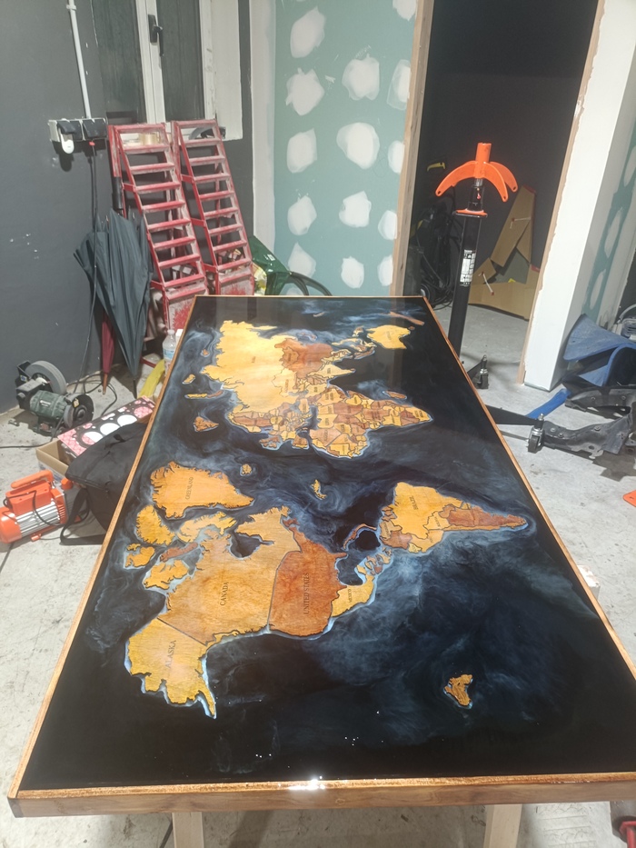 Начал с того что решил нарисовать эпоксидной смолой на сантиметровой фанере, что то вроде космоса.