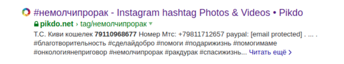 Что мы видим в выдаче а 1 месте? Сбор на некоего Мишу Пиренкова, тяжелобольного мальчика с очередной пиздецомой. И тут же номер карты, который тоже легко гуглится и выдает результаты про мошенничество, буквально, по 1-2 ссылке в результатах выдачи.