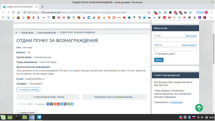 Видим объявление о продаже почки. Странно продавать почку для человека больного раком, правда?)