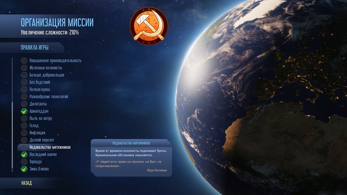 Выбираем своё уютное гнёздышко на карте. О боже, Марс что тоже круглый? Лучше брать поровнее, да поспокойнее, следите за температурой, если не хотите частых зим, вы же не в симулятор родного края играете. Ну если хотите, то можете, но потом всё равно сжечь.