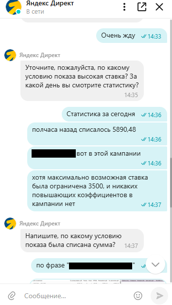 Сижу сегодня, никого не трогаю, в Яндекс.Директе ковыряю кампании. Вдруг бац, списывается за клик в компании 5.890,48. При этом максимальная стоимость клика жестко ограничена 3.500 рублей. И никаких повышающих корректировок нет, сплошные понижающие. Пишу в техподдержку