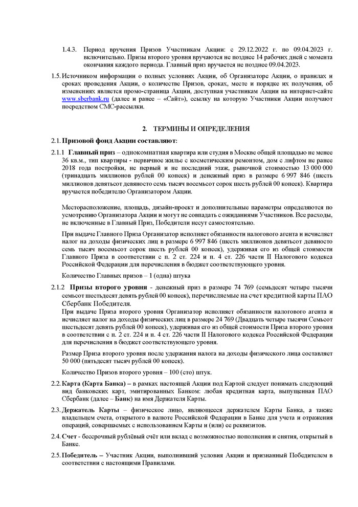 При этом вёрстка самого документа просто поражает любого документоводоведа и перфекциониста в самое сердце: номера пунктов правил выровнены вкривь и вкось; отступы от номеров пунктов разные; пунктов 4.3 аж две штуки; межстрочный интервал разный по всему документу; параграф 8 вообще начинается с пункта 8.5; в Правилах написано, что документ об условиях акции находится на сайте sberbank.ru, а фактически находится на sberbank.com