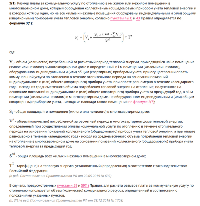 У нас есть статья 157 ЖК РФ, которая говорит, что размер платы за коммунальные услуги рассчитывается исходя из объема потребляемых коммунальных услуг, определяемого по показаниям приборов учета. Логика очень проста: если у вас стоит ИПУ (индивидуальный прибор учета) по простому счетчик (водный или тепловой) вы должны платить по нему. Если 01.01.2026 у вас показание 0, а 01.02.2026 показание 10, то вы должны заплатить за 10. Это понятно и логично, а как же дела обстоят здесь. Они считают объем потребляемой энергии, сколько им нужно, для максимальной экономической выгоды и направляют ее в дом, вне зависимости, надо это кому то или нет. Дальше делят это на квадратные метры собственников и у нас получается цифра, от которой очень сильно удивляешься (оплата мест общего пользования более 2 000 рублей в месяц, так как в подъездах зимой можно только в майках находиться, т.е. постоянные перетопы). А для понимания, в каждой квартире, на каждой батарее есть регулятор и одна квартира может потреблять много, а другая очень мало, но счета у всех будут примерно одинаковые. А почему так? Потому что считают они по формуле 3(1) 354 ПП, где учета ИПУ просто нет, то есть по старинке, по среднему, как будто не знают, кто сколько потребляет. Но вот раз в год они делают обход и снимают показания счетчиков и если получается что вы потребили больше чем вам насчитали - вам выставляют отдельный счет на оплату, а если вы потребили меньше - то ничего не происходит и вам даже отказывают в перерасчете.