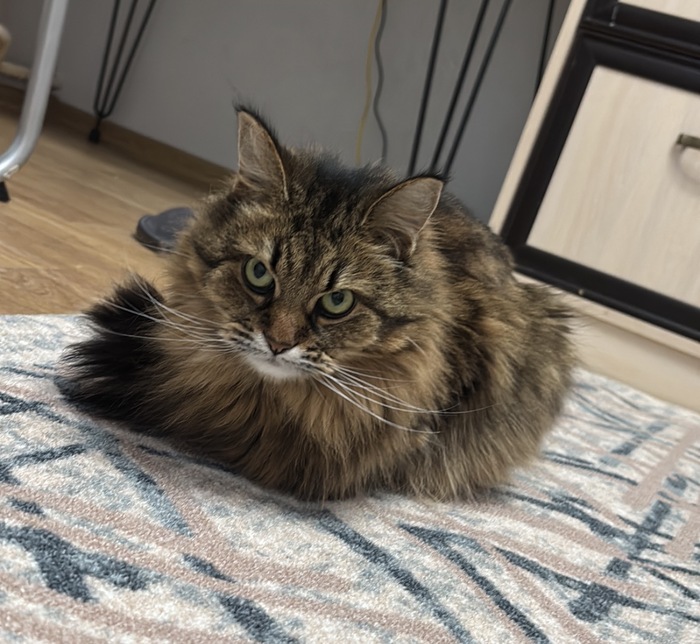 Сейчас Василиса живет на передержке. Она оказалась спокойной и наблюдательницей по жизни: самое любимое занятие у Василисы — забираться на высокие места и смотреть оттуда за происходящим.