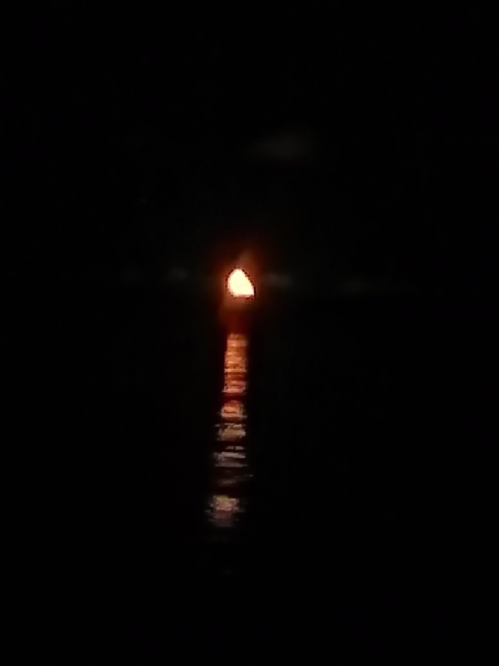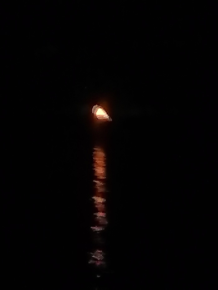 Восход луны на Онеге, камера на телефоне слабенькая, могу только от себя сказать что красиво до безумия. Своими глазами это выглядело примерно так: половинка луны, взошла над горизонтом наполовину, и получился такой треугольник. Это было похоже на красный кусочек пиццы над горизонтом, лунные кратеры как кусочки начинки, только добавляли сходство. Но это к сожалению на фото не передаётся.