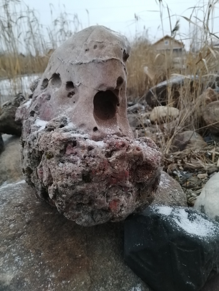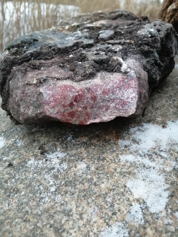 Это я по своему опыту определил как мрамор, хотя до месторождения этого красного мрамора от нас примерно 150 км на север. Ну может ледник притащил когда то миллион лет назад.