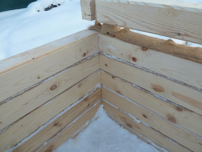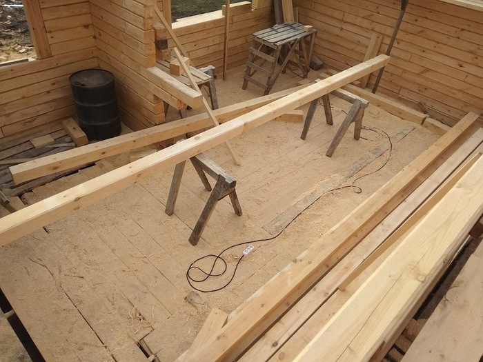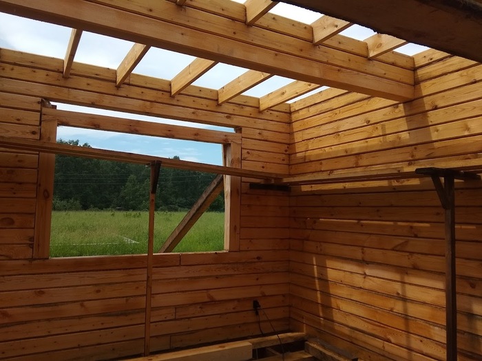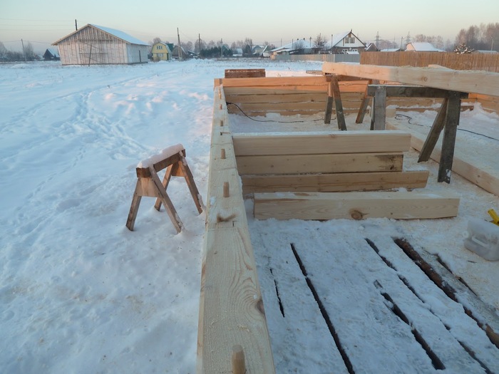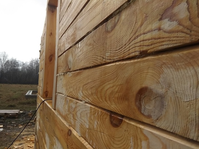 Вопрос "зимнего" и "летнего" леса оказался совсем не острым - смонтированный - читай зафиксированный) на стенах брус спокойно просохнет. Стройка у меня была не быстрая поэтому проблем с скоростью сушки особо не возникло.