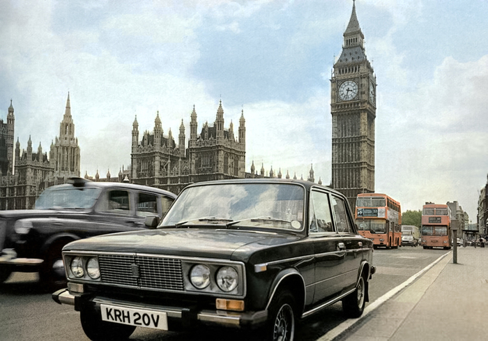 Экспортная лада на Вестминстерском мосту. Лондон, 1977 год.