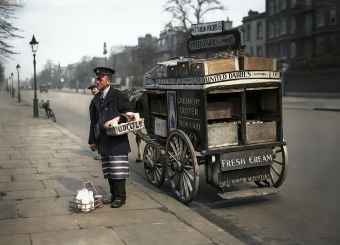 Доставка молока на дом в Лондоне и в крупных городах Англии в начале XX века — повседневный ритуал, ставший символом британской бытовой культуры. Каждое утро, задолго до восхода солнца, по тихим улочкам столицы разносился звон колокольчика или скрип деревянной тележки — признак того, что молочник уже в пути.