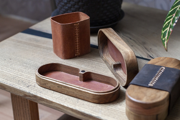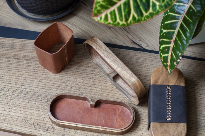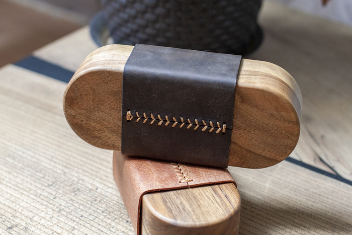 Сделал еще пару футляров. В этот раз реализовал давно крутившуюся в голове идею - сделать кожаную манжету, удерживающую половинки. Они и так удерживаются магнитом и ничего не открывается даже в рюкзаке, но ВДРУГ?