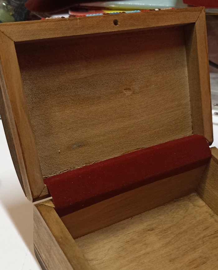 Исходные данные - была у меня шкатулка, уже полностью ошкуренная, украшенная, покрытая лаком, но без внутренней отделки. И вот, когда звёзды сошлись за это взяться, я решила процесс задокументировать по шагам, вдруг кому-то начинающему именно сейчас пригодится?