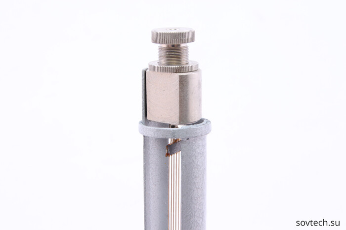 Внутри датчика интересный механизм - электромагнит прижимает язычок только на время измерения, чтобы сила трения не искажала показания влажности из-за удлинения волос. Ну и за столько лет лежания на язычке выросли дендриты.