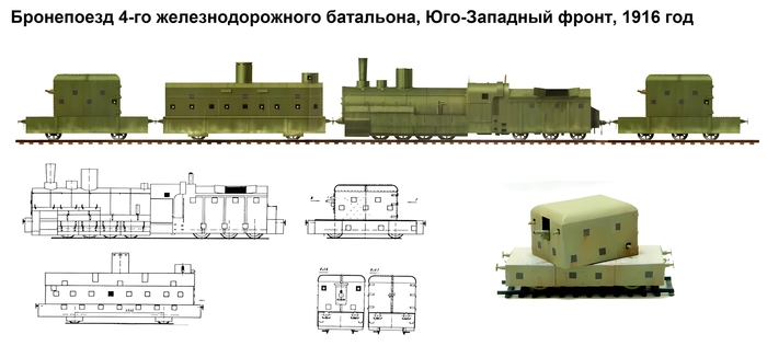 В истории сохранились упоминания о поезде построенном 4-ым железнодорожным батальоном в ноябре 1914 года, (ныне его называют бронепоезд "Морской"). Информации о нём сохранилось непостижимо мало. Например нет, даже его фото... В связи с ситуацией на фронте, срочно нужен был бронепоезд и он был построен. Для защиты вагоны обшили досками внутри, и тонкими листами металла снаружи. Из вооружения в двух его "бронированных" вагонах стояли пулемёты и винтовки в руках солдат, пушек - не было. Со своими задачами он справился. Если говорить кратко, то это всё. Я бы вообще его не упоминал, но по документам Российской Империи он входит в 15 бронепоездов, построенных до середины 1917 года, а значит я не могу его не упомянуть если рассказываю обо всех бепо России тех лет.