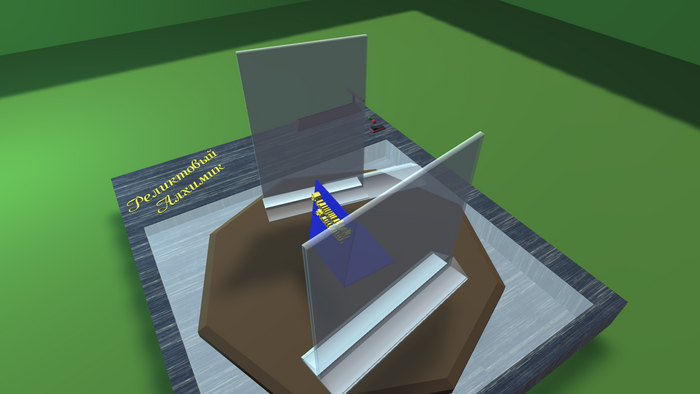 3D модель настольной вытяжки( прозрачная ) на медных трубка как основании.