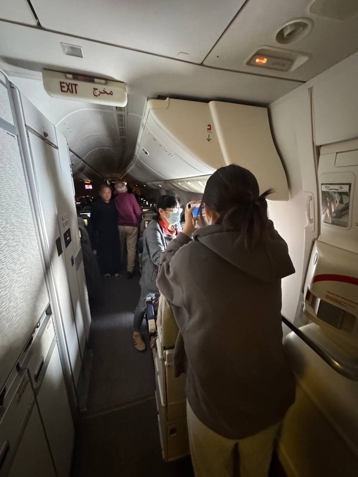 Выспался. Бока затекли, поясница трещит. Рядом никого не было, и я тоже встал. Свет полностью погасили, хоть за окном светило яркое солнце. Включили звездную подсветку и сымитировали ночь. Кто-то бродит, кто-то стоит в проходе, кто-то спит в странных позах. Очень хочется поотжиматься или поприседать. Жалею, что не взял Theragun — ручная кладь и так с перевесом на 5 кг. Лучше бы один объектив оставил. Считаю, что на борту должны быть тераганы по умолчанию.