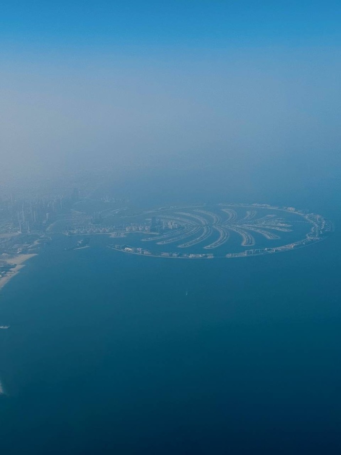Мы взлетели, и я увидел в иллюминатор ту самую пальму-остров, небоскребы и здание-парус на берегу моря. Красиво, конечно, арабы у себя тут настроили.