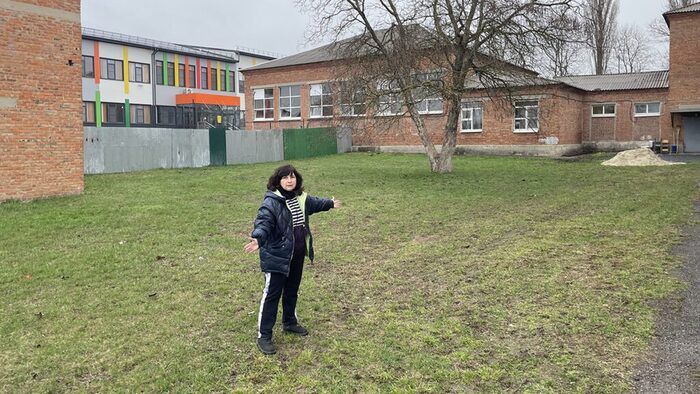 Но беспокоят Иващенко не только размеры участка. Она показывает в глубину школьного двора — там виднеется дверь пожарного выхода. Скорее всего, площадка встанет близко к стенам корпуса, прикидывает бывшая учительница: и что тогда?
