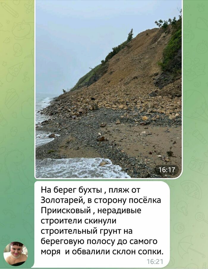 Я дважды за это лето писал об отсыпке земельного участка в центре города Находка, на берегу озера Солёное, что прямо в центре города - строительными отходами, кусками старого асфальта, мусором и разнообразным хламом - что прямо запрещено действующим законодательством нашей страны.