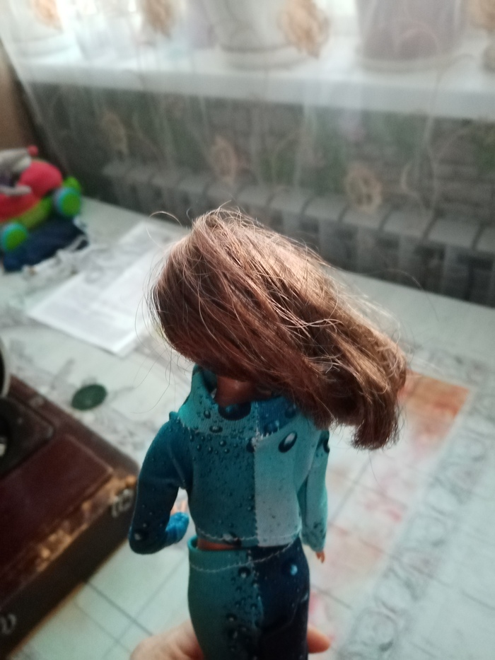 Перепрошила кукле-русалочке волосы из шерстяных фиолетовых ниток. Результат (до/после) в конце видео.