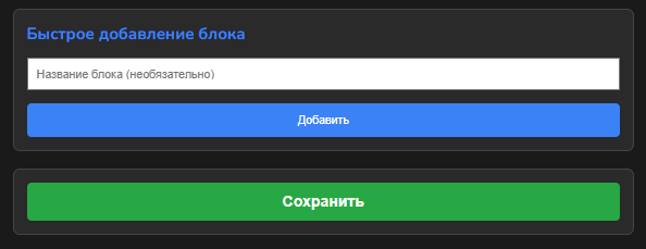 Это я выделил, когда столкнулся с проблемой добавления нового блока в середине редактора, листать каждый раз вниз, а потом назад было неудобно, вот я и добавил в бок панель. Так же как и сохранение. Это оказалось очень удобным, но я это изначально не планировал.