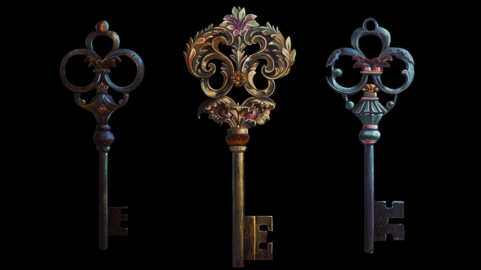Забавно вспоминать, что вся задумка моей игры изначально состояла из поиска трех ключей, каждый из которых принадлежал какому-то значимому персонажу в игре. Что-то вроде ключа от шкатулки с секретом (скелеты в шкафу как-то слишком мрачно выглядели в первых эскизах). Всё же эта игра не про страхи и ужасы, но и, как мне кажется в конечном своем исполнении, детективом в стиле Шерлока Холмса не является тоже.