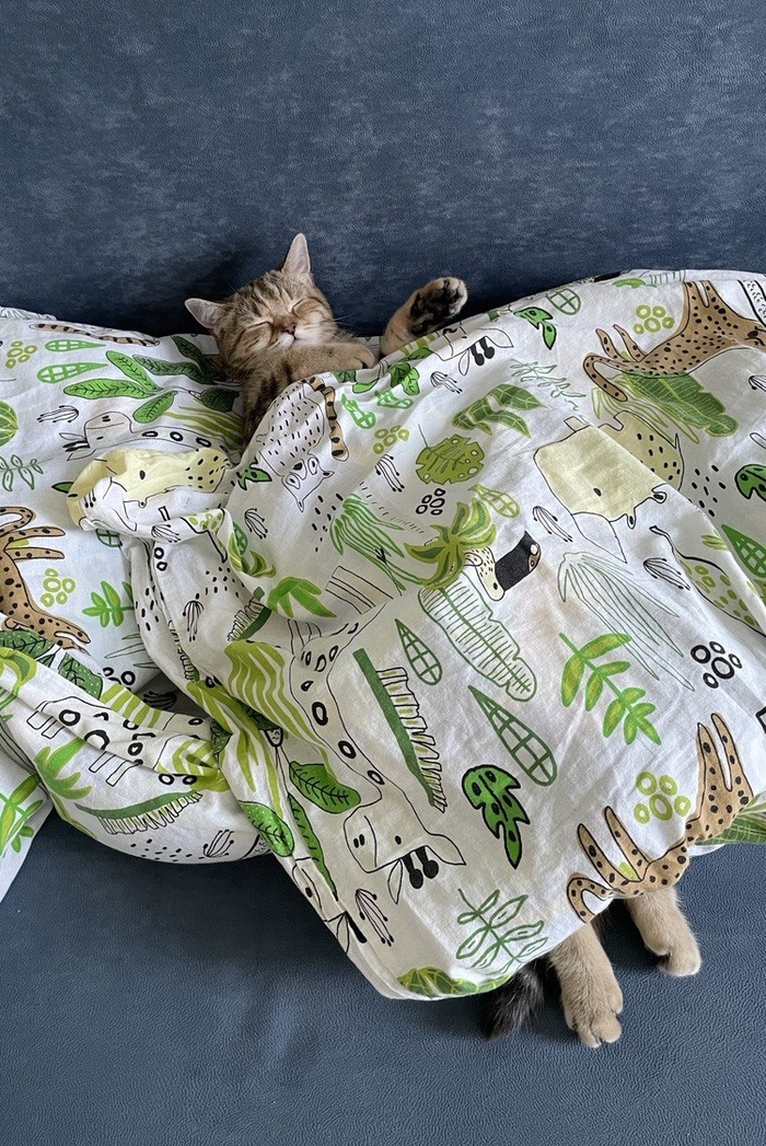 На этом контрасте я понял, что Огурцу не хватает активности. На диету мы его посадили, но этого мало — нужно двигаться. Фигура кошки, грация картошки — это как раз про нашего. В природе кошки много бегают и лазят по деревьям. У нас дерево заменяла когтеточка на ножке стола.