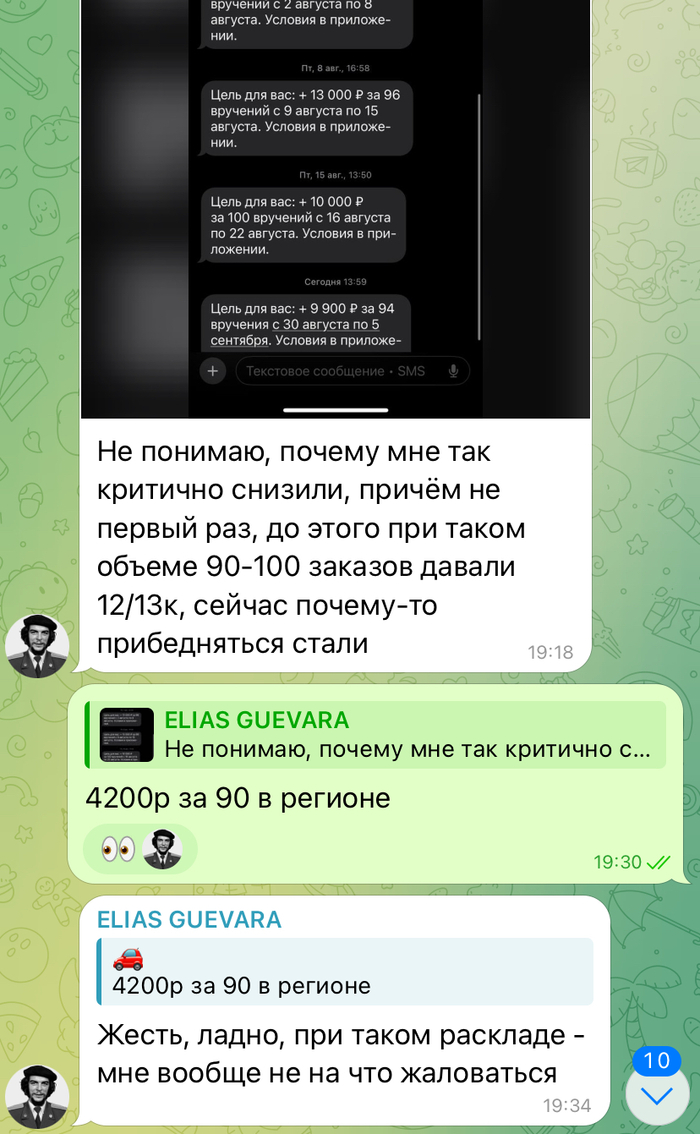 В чате курьеров полно подобных истории, приведу один наглядный пример: