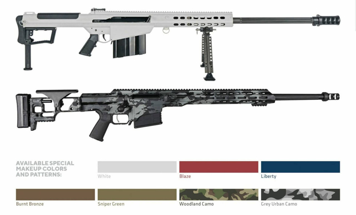 В 2026 году компания Barrett расширит ассортимент Cerakote® finish для своих флагманских винтовочных платформ. Все винтовки M107A1®, Model 82A1® и MRAD® теперь можно заказать в пяти новых вариантах отделки: Белый, Blaze (красный), Liberty (синий), Жженая бронза и снайперский зеленый. В дополнение к этим новым однотонным цветам, клиенты также могут выбрать дополнительные модели лесного камуфляжа или серого городского камуфляжа. Стандартные варианты отделки Barrett, включая черный, вольфрамово-серый, FDE и Coyote, по-прежнему доступны, а дополнительные продукты в настоящее время оцениваются на предмет расширения цветовой гаммы в будущем.