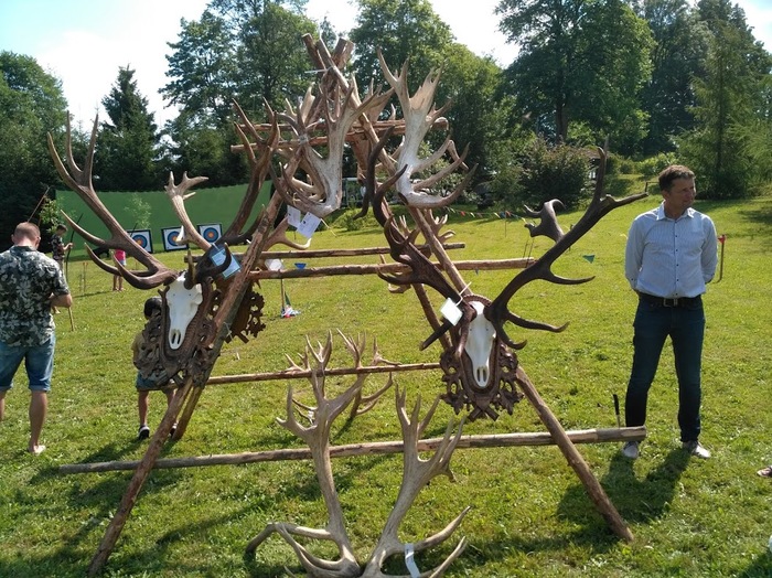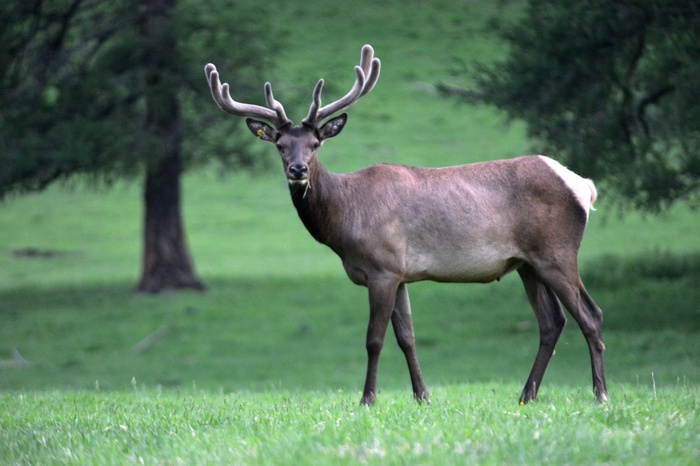 Часто самцы вонзают рога в траву и её длинные пучки свисают с рогов, как дополнительное украшение. Чем больше травы свисает с рогов самца, тем привлекательнее он для самок.