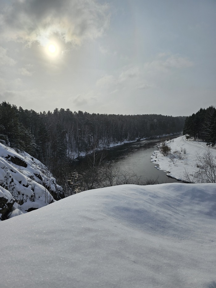 Морозно и холодно, но так спокойно. Из звуков только птицы. Вдали можно встретить такого же "одинокого" путника, который гуляет со своим барбосом, а кто-то и на лыжах, кто-то на снегоходе.
