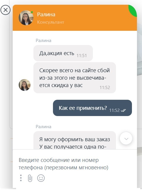 Пишу вопрос второму консультанту с прекрасным и редким именем Ралина: