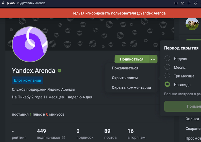 После того, как я вывел на чистую воду мультовода Zolotieruki, его остальные 3 аккаунта наконец заблокировали, а меня он добавил в игнор-лист своего сообщества, чтобы я не мог призывать editors к его постам.