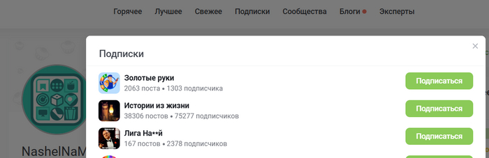 NashelNaMP даже подписан на сообщество Золотые руки, которое ведет Zolotieruki