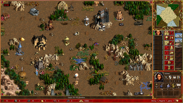 Как можно увидеть теперь 2 биома у каждого игрока. Стартовый герой появляется в одиноком городе на респе лишь с начальной армией , и как истинные начинающие приключенцы вы должны собирать армию (tear 1-4), что бы выбраться со стартовой локации с помощью 1го из 4х объектов городских врат. Другого пути на волю нет))) Хотя...